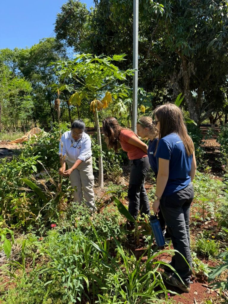 Participaram da atividade Fernanda Trevizan, Luiza Bressan, Anabel – do Instituto Homem Pantaneiro (IHP), e Sandra (estagiária). Durante a visita, o grupo conheceu a agrofloresta, o jardim e o sementário da chácara, espaços que reúnem uma grande diversidade de espécies nativas e representam práticas sustentáveis de cultivo e conservação.