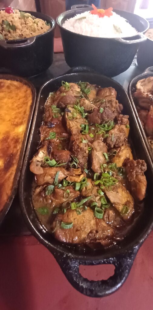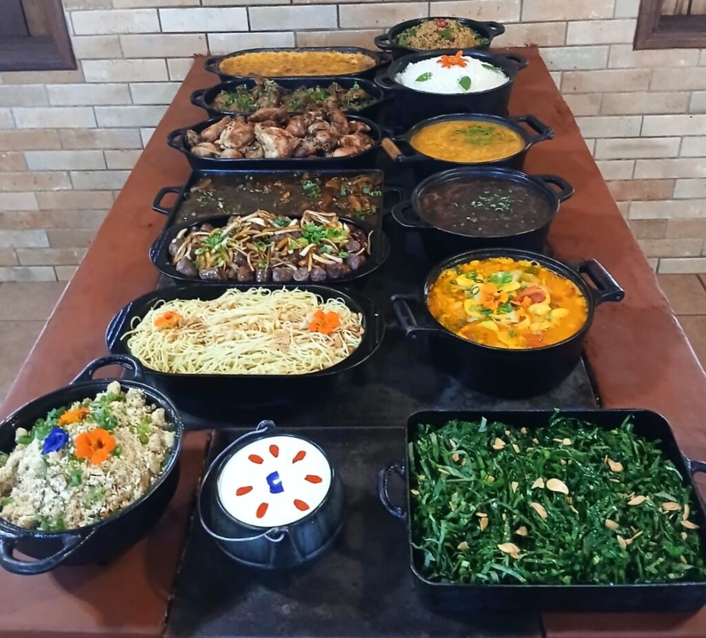O almoço do Recanto Ecológico Rio da Prata é um dos pontos altos da visita, conhecido pelos sabores regionais e pela comida servida no fogão a lenha. O cardápio valoriza ingredientes frescos e de origem sustentável, com destaque para produtos colhidos diretamente da agrofloresta e da horta de manejo orgânico do atrativo. Esses alimentos garantem não apenas o sabor autêntico da gastronomia sul-mato-grossense, mas também reforçam o compromisso do atrativo com a sustentabilidade e a produção consciente.